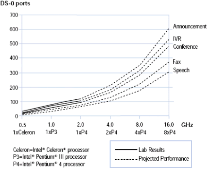 在奔騰處理器上引入DSP能力使得開發(fā)主機媒體處理功能非常高性價比. 根據(jù)初步的預測, Dialogic估計HMP軟件讓一個1GHz的奔騰處理器可以代替兩顆150MHz的DSP.