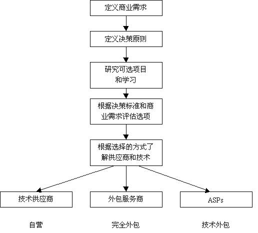 在確定規(guī)模和電子商務的影響之前,應該先花費些時間分析一下環(huán)境條件。圖2提供了一個框架結構,可用于確定實現(xiàn)電子商務支持最好的方式。記住,這只是確定你希望采取的步驟的第一步,下一步將選擇一個銷售商或供應商。